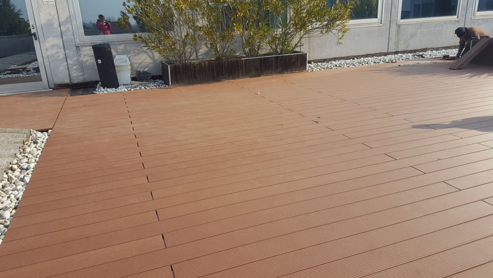 I listoni in composito, lisci o zigrinati, in varie finiture e sfumature, con le proprietà estetiche del legno, sono facili e veloci da posare, e creano pavimentazioni antiscivolo e antischeggiatura, resistenti alle abrasioni e alle crepe, all’acqua e alle deformazioni, ai raggi UV e agli insetti.
